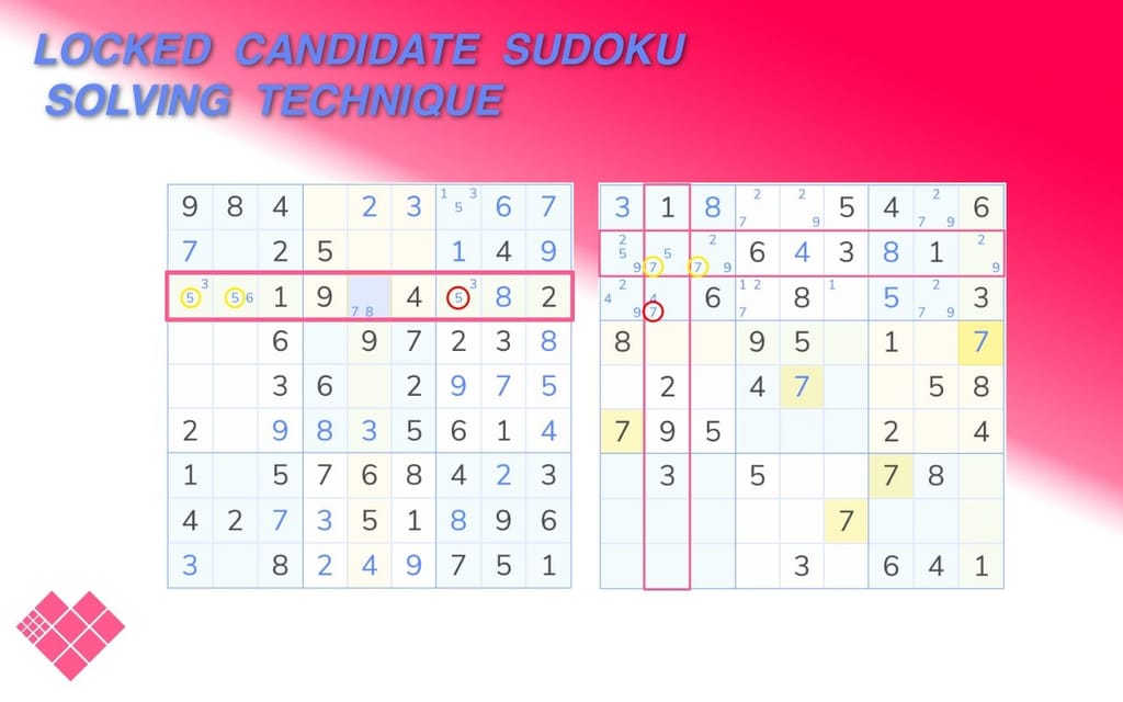 Spiegazione della tecnica di risoluzione del Sudoku "Candidati bloccati":